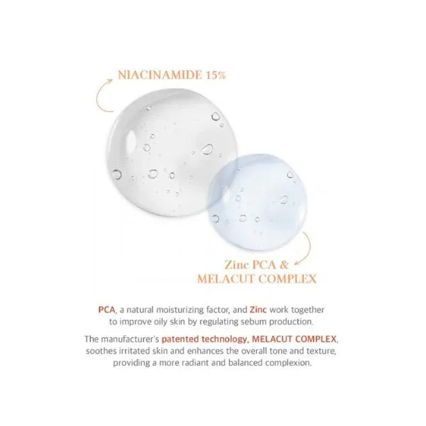 - Niacinamide (15%): vitamina B3 multifunzionale che migliora il tono, riduce i pori e regola il sebo.