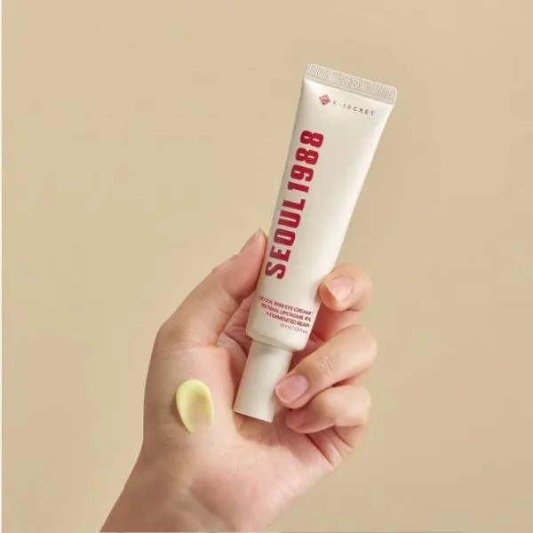 Crema contorno occhi antietà ad azione liftante con retinale liposomiale al 4%, complesso probiotico fermentato e peptidi. K-SECRET SEOUL 1988 Eye Cream aiuta a ridurre rughe e linee sottili, migliora la densità cutanea e dona allo sguardo un aspetto più giovane, levigato e compatto.
